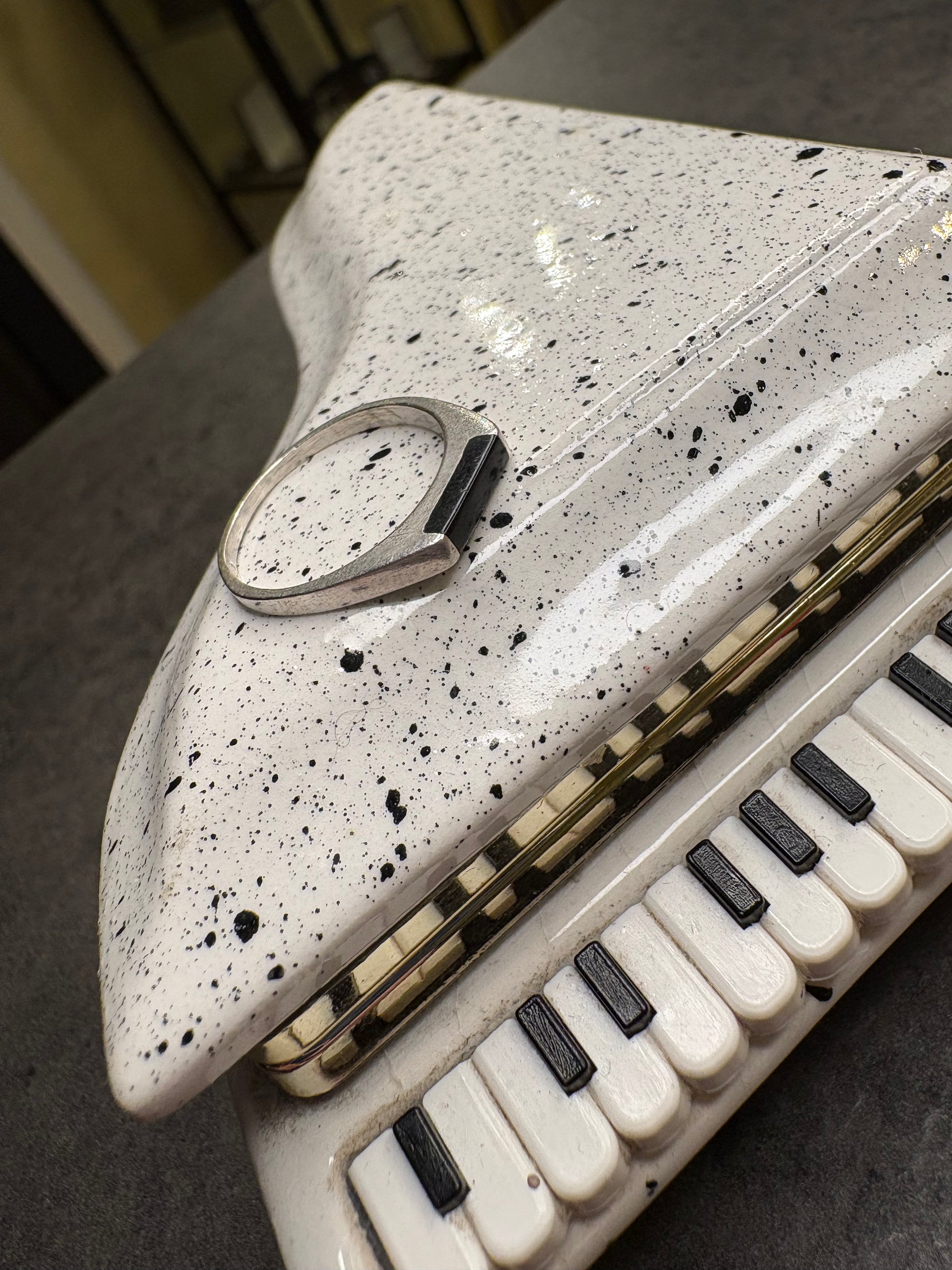 Le linee pulite e la lavorazione liscia dell’argento mettono in risalto il contrasto tra la lucentezza metallica e l’intensità profonda dell’onice, creando un equilibrio perfetto tra modernità e fascino rétro.