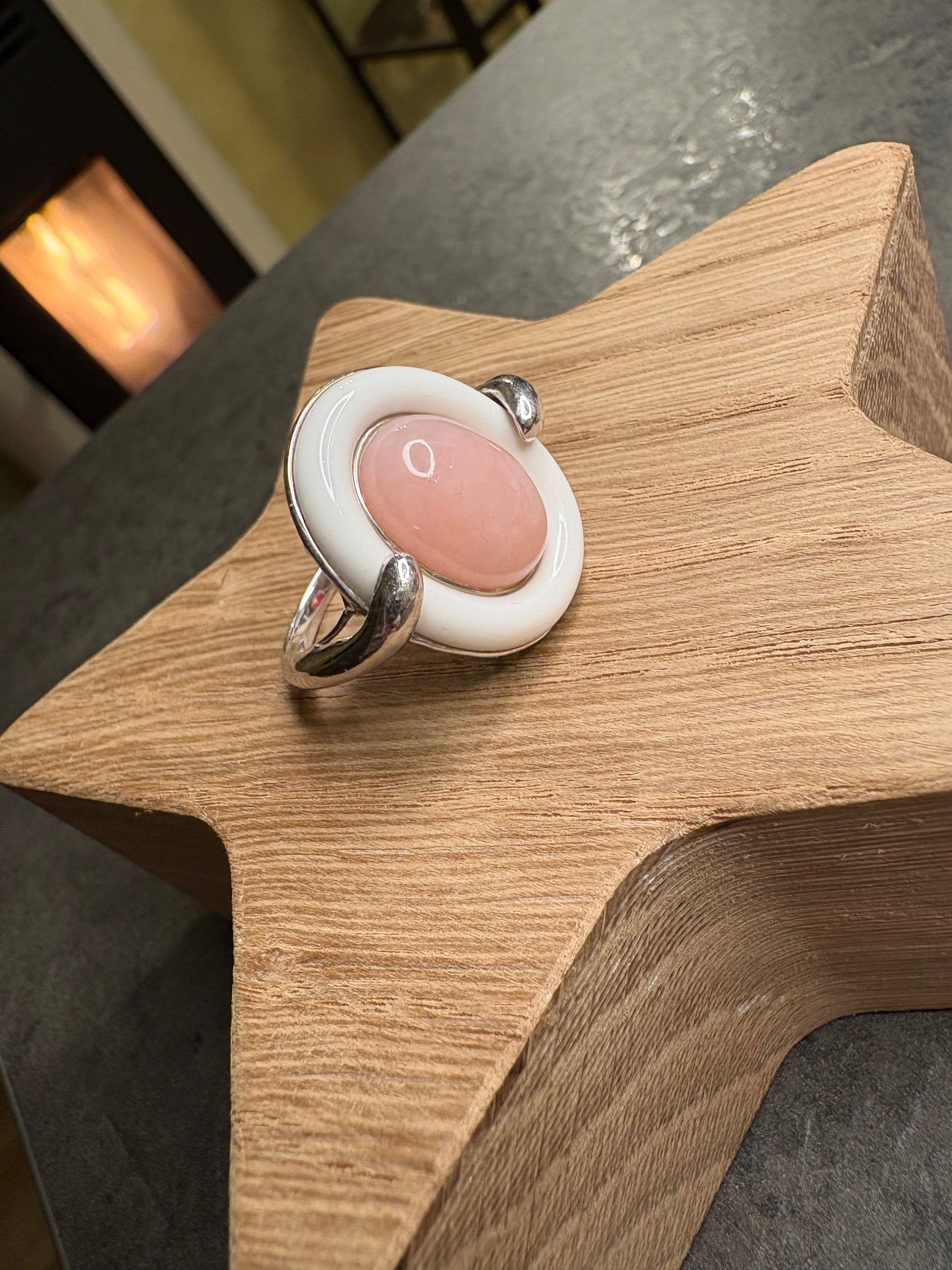 Questo bellissimo anello realizzato in argento, è impreziosito da un quarzo rosa dalla delicata tonalità cipria, con taglio ovale e superficie liscia. La pietra è incorniciata da una montatura essenziale e armoniosa, che lascia spazio alla naturale luminosità e morbidezza del quarzo. Il design è elegante e femminile, perfetto per essere indossato quotidianamente o abbinato ad altri gioielli in argento.