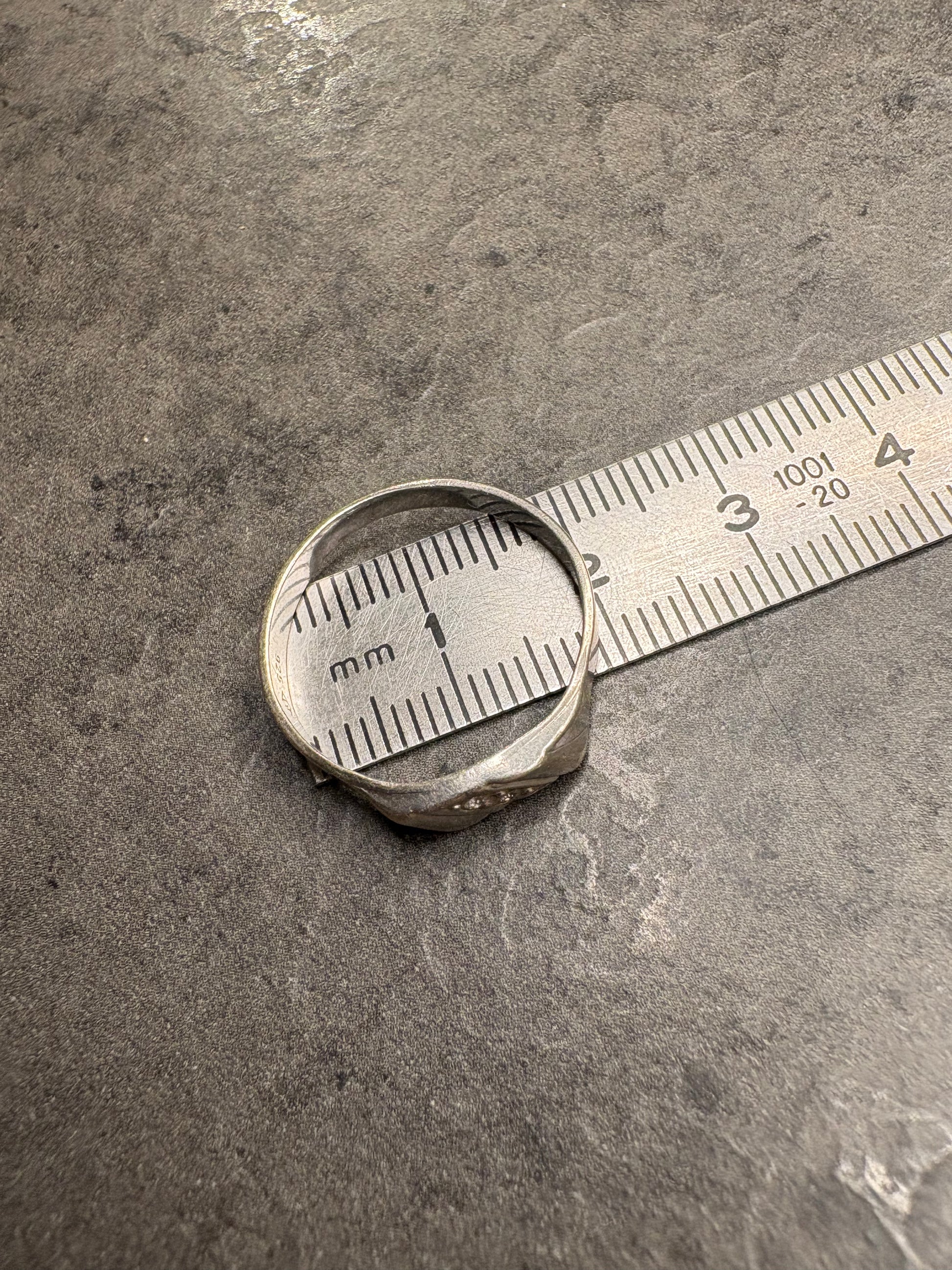 Questo elegante anello vintage, realizzato in argento 925 presenta un design sobrio ma ricco di carattere tipico della gioielleria d’epoca.