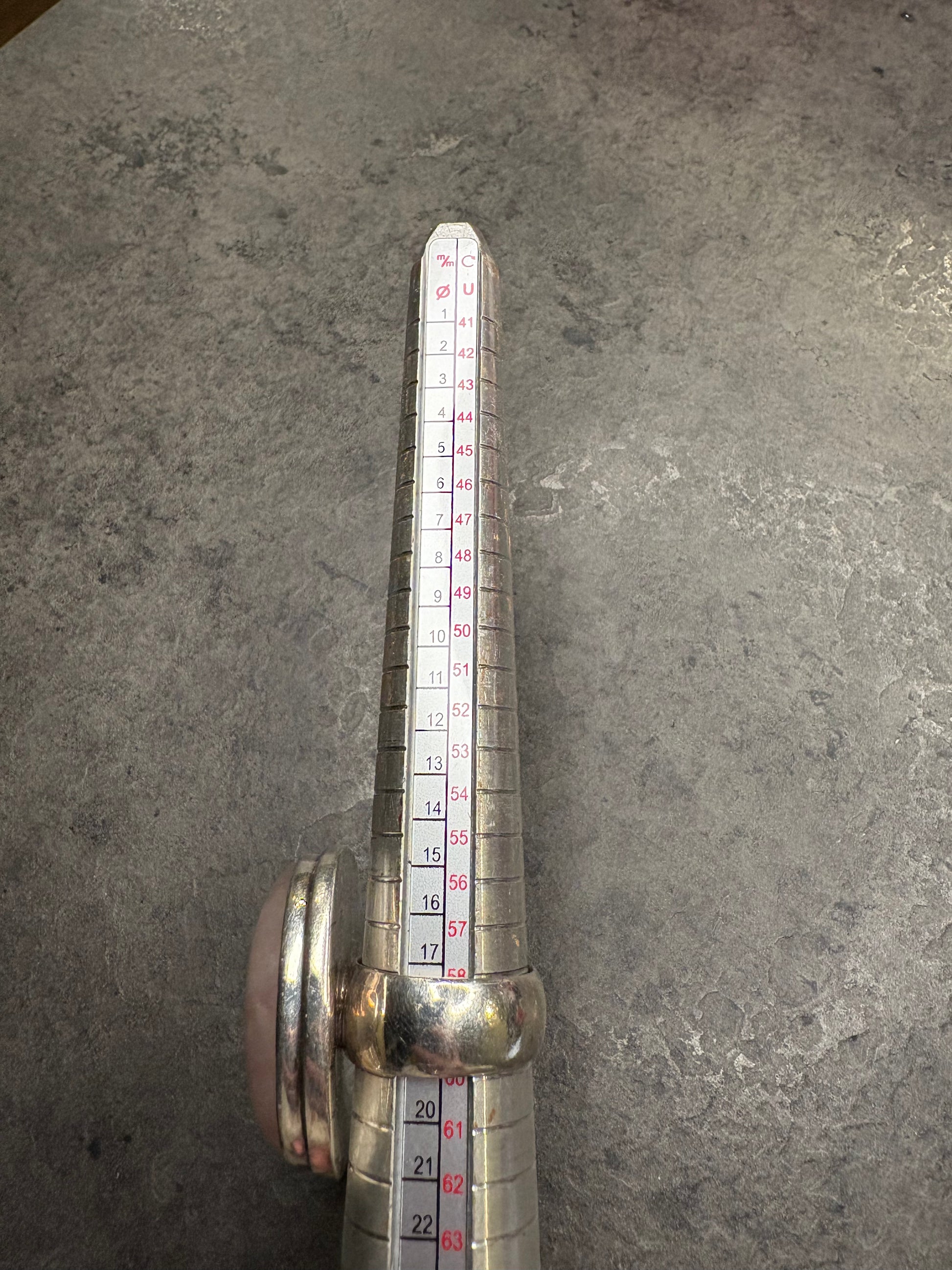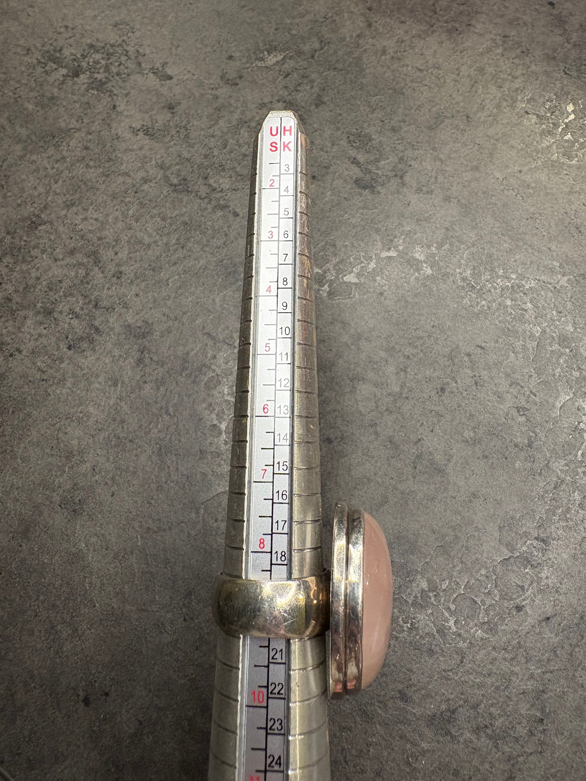 Splendido anello vintage in argento 925 con un’imponente pietra di quarzo rosa dal taglio ovale e dal colore tenue e lattiginoso. La montatura, solida ma essenziale, abbraccia la pietra con un bordo liscio e leggermente bombato, lasciando risaltare tutta la luminosità naturale del minerale. Il gambo, ampio e dalla superficie leggermente satinata, dona equilibrio e modernità alla composizione. Un gioiello dal fascino sobrio ed elegante, capace di unire forza e delicatezza in un’unica creazione senza tempo.