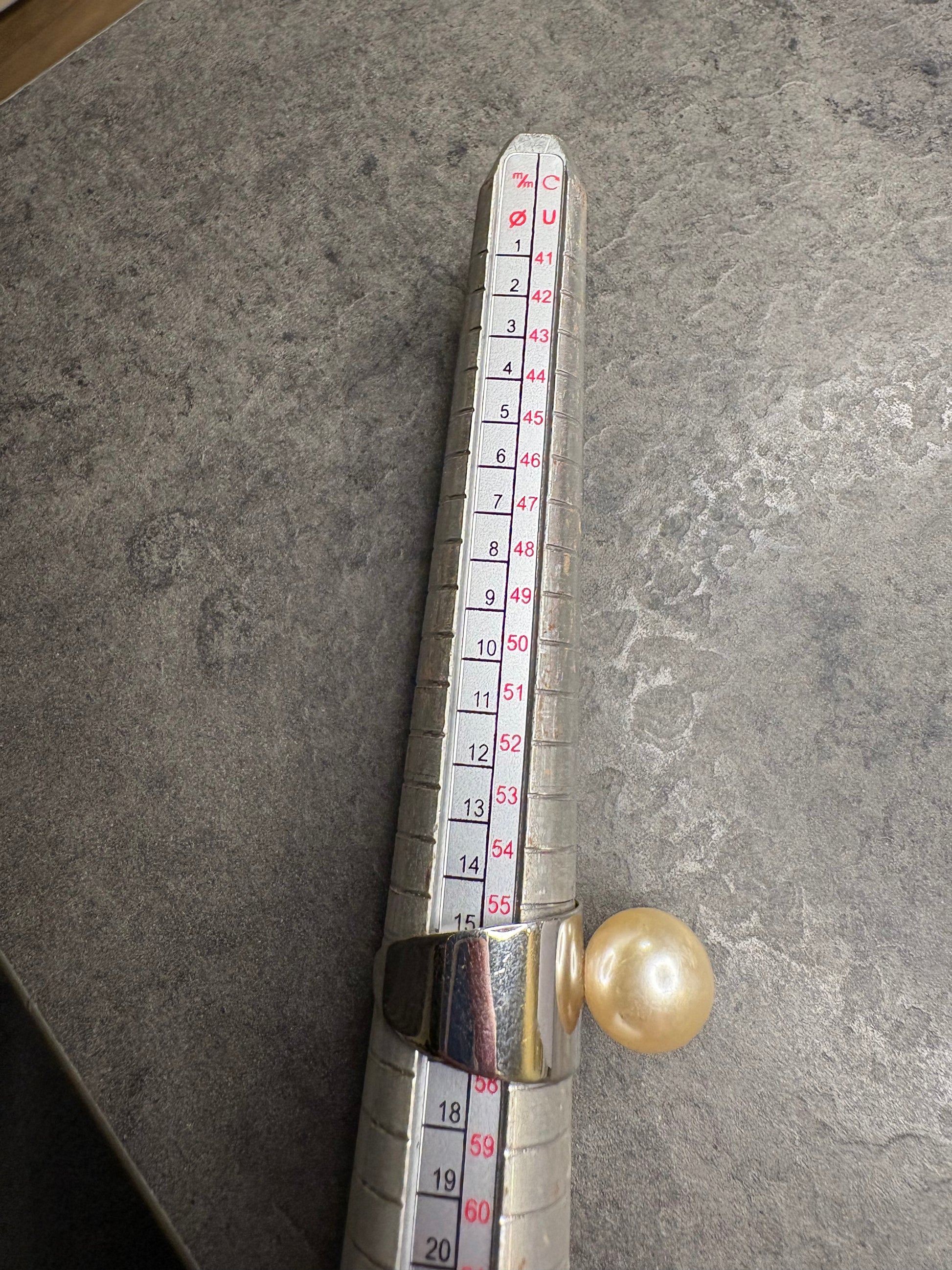 Il protagonista assoluto è la grande sfera perlata dal forte impatto visivo, montata su una struttura in metallo color argento dal design aperto e architettonico.