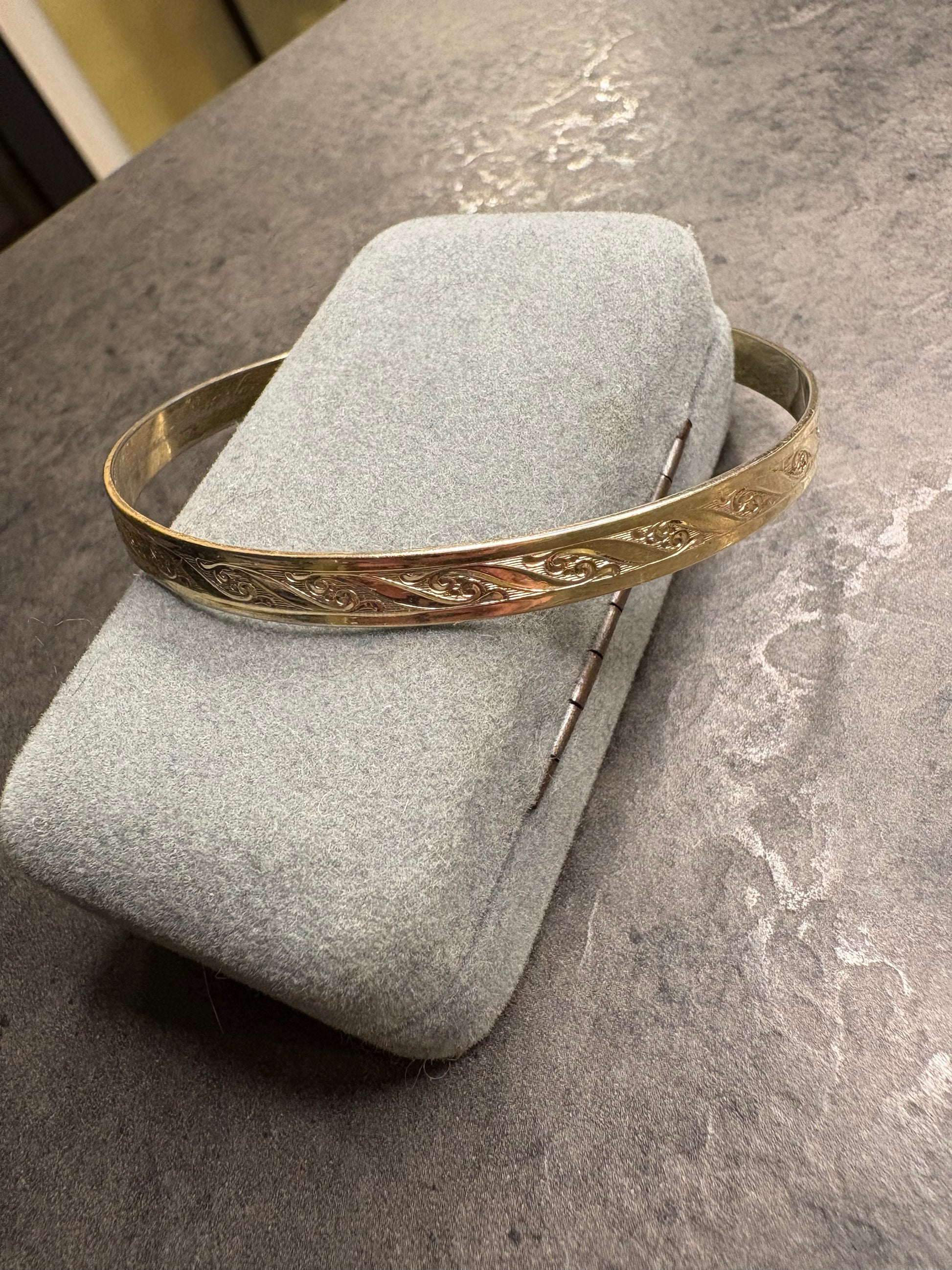 Elegante bracciale rigido vintage dorato, dal fascino discreto e raffinato.