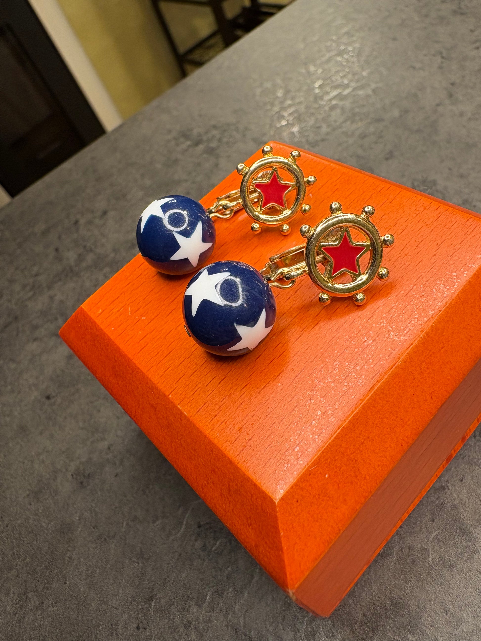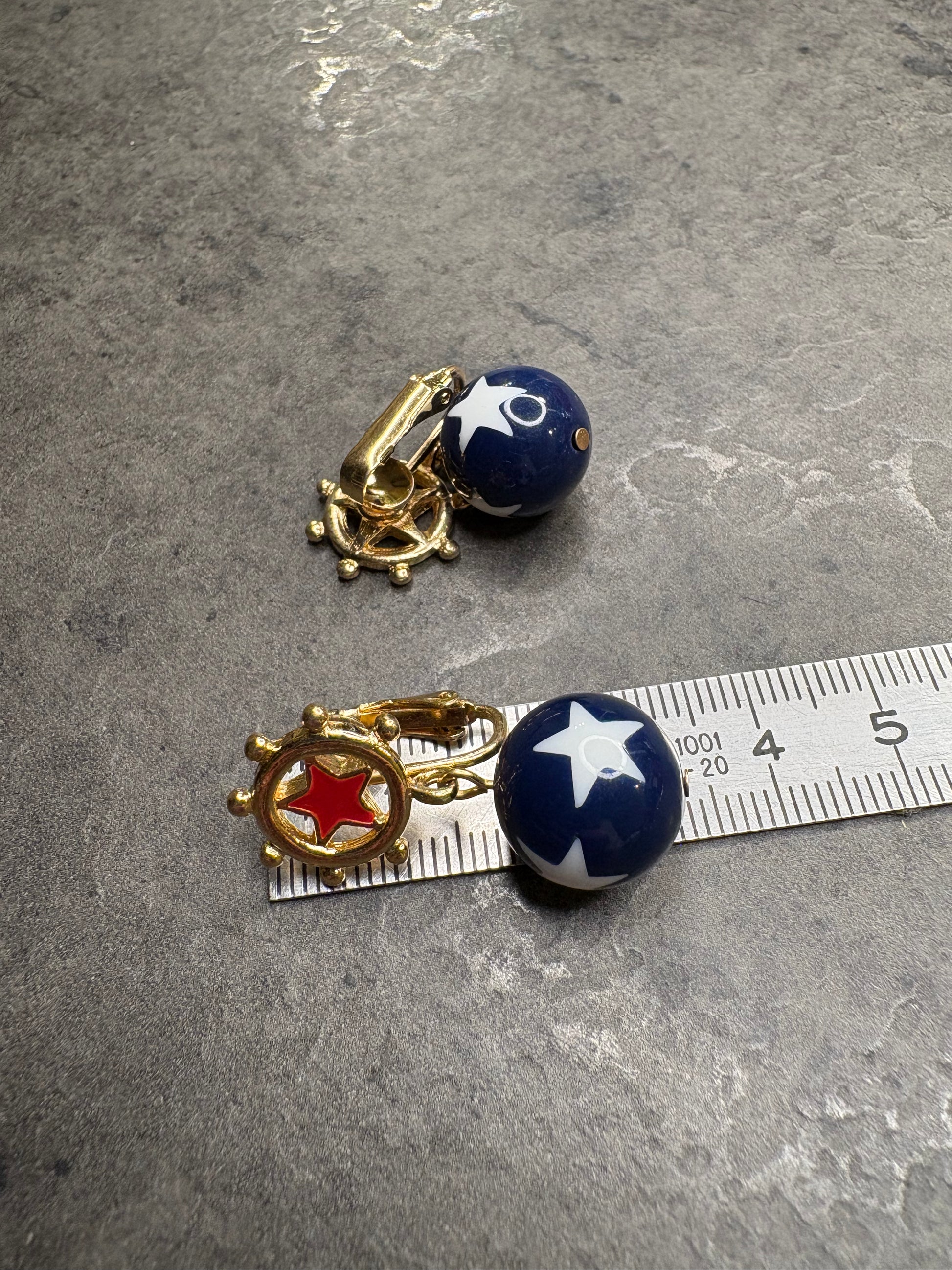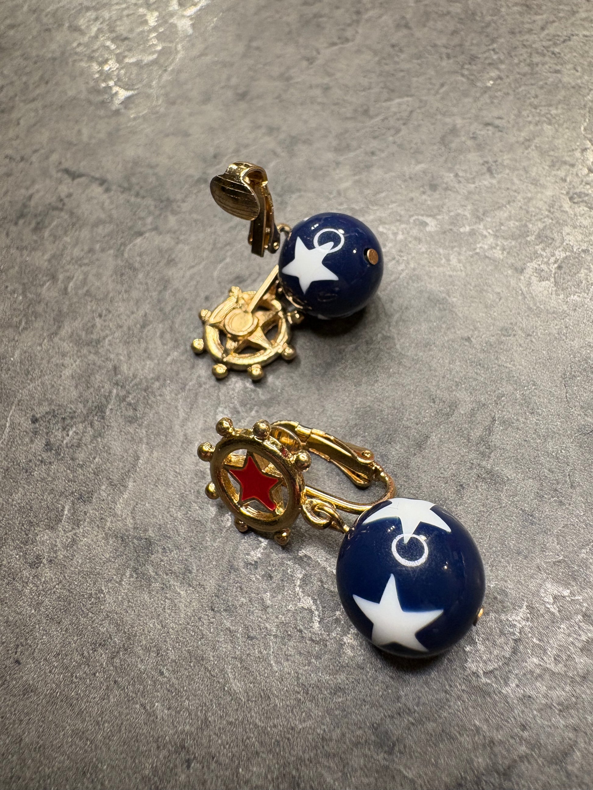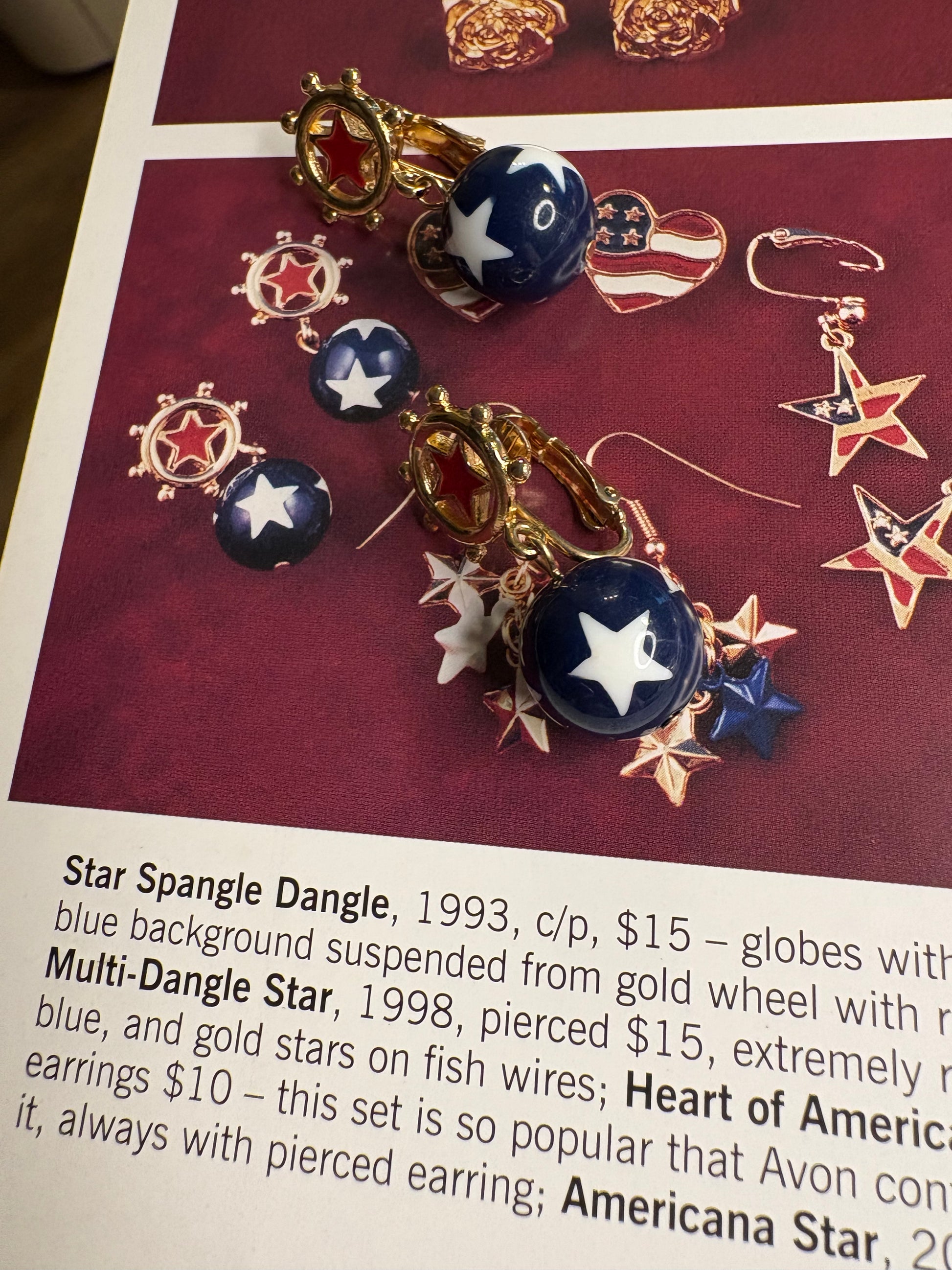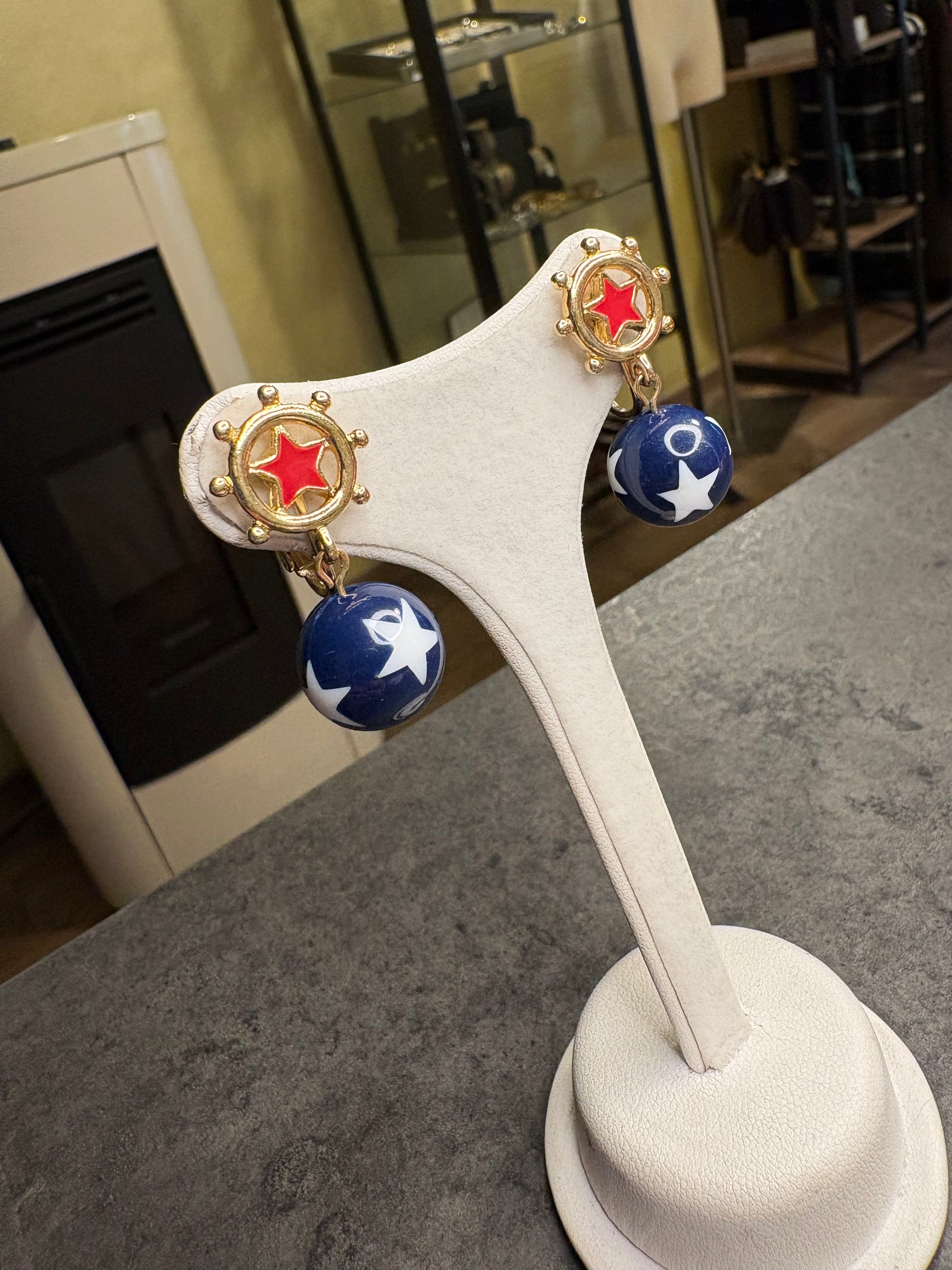 Iconici orecchini vintage Avon “Star Spangle Dangle”, realizzati nel 1993, simbolo perfetto dello stile giocoso e patriottico tipico delle collezioni anni ’90 della maison americana.