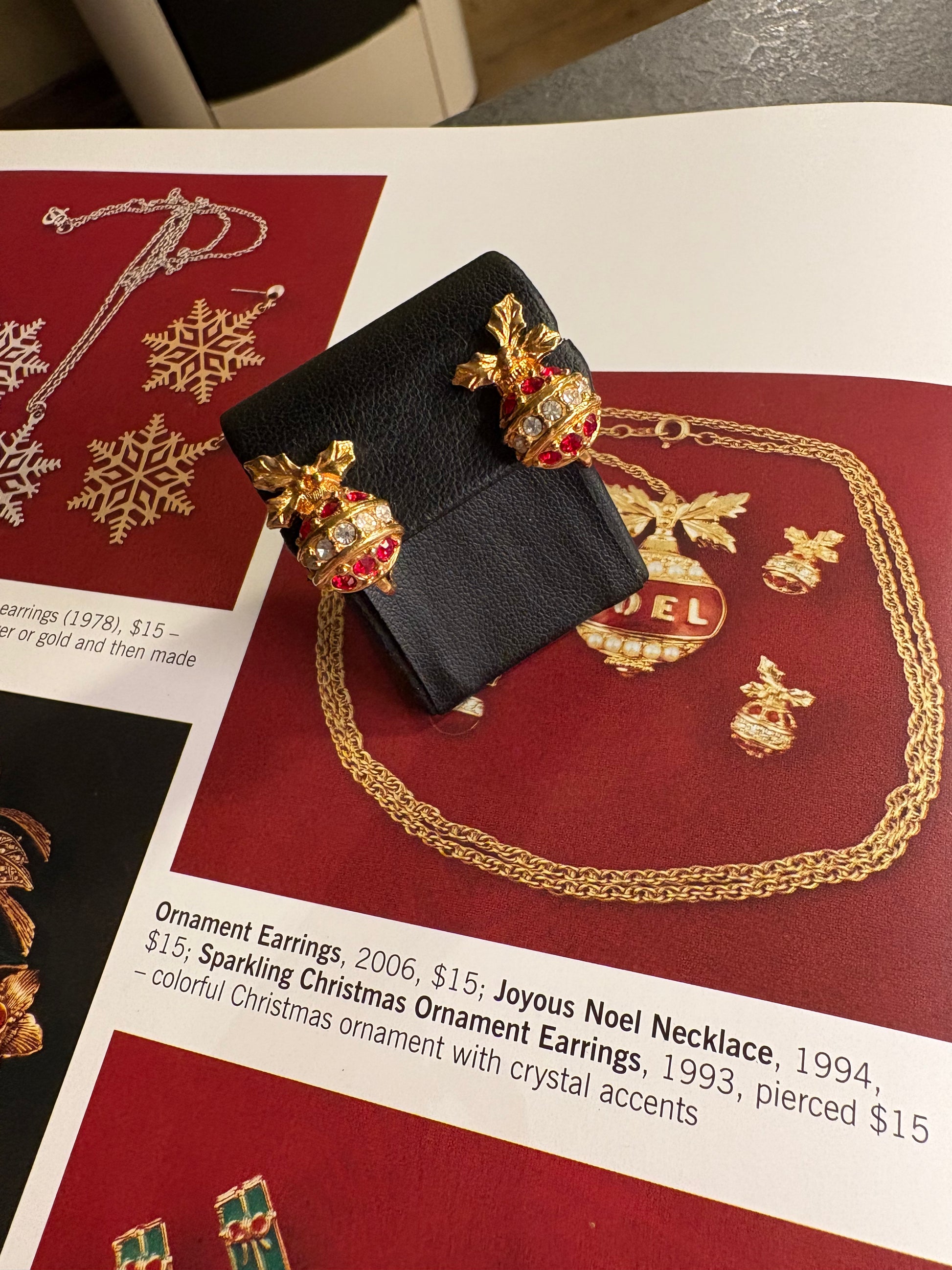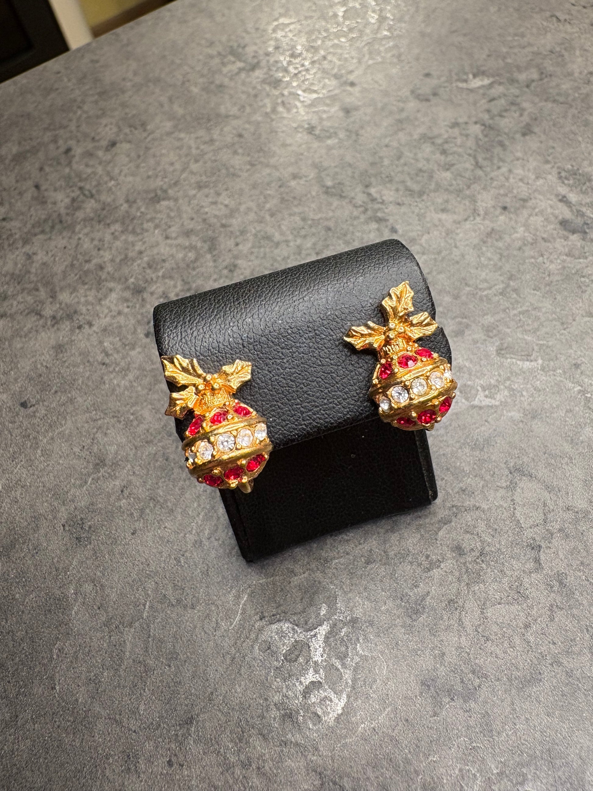 Deliziosi orecchini a clip vintage natalizi Avon, collezione Sparkling Christmas Ornament Earrings, datati 1993.