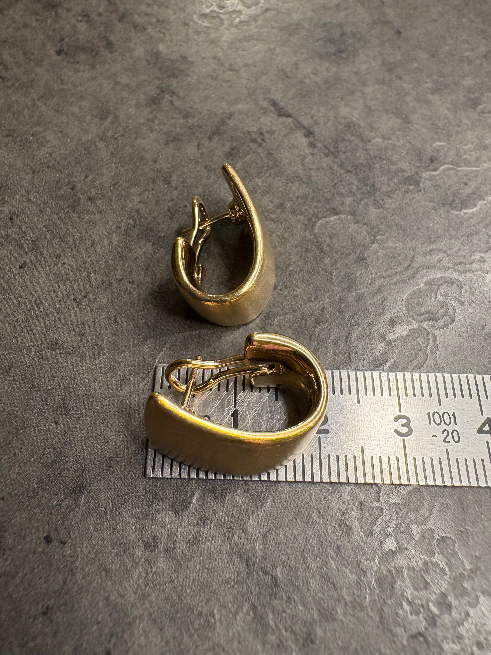 Questi eleganti orecchini per lobi forati di Pierre Lang, in metallo placcato oro satinato con elementi lucidi dalla forma irregolare e moderna, donano luce e stile contemporaneo.