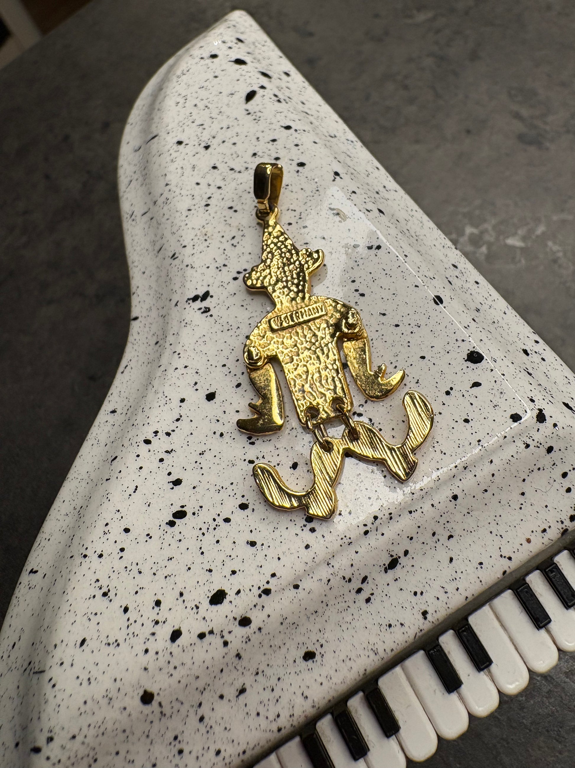 Un gioiello dallo stile retrò e dal carattere ironico, perfetto da indossare come pendente su una catena lunga o come elemento da collezione per gli amanti della bigiotteria d’epoca tedesca.