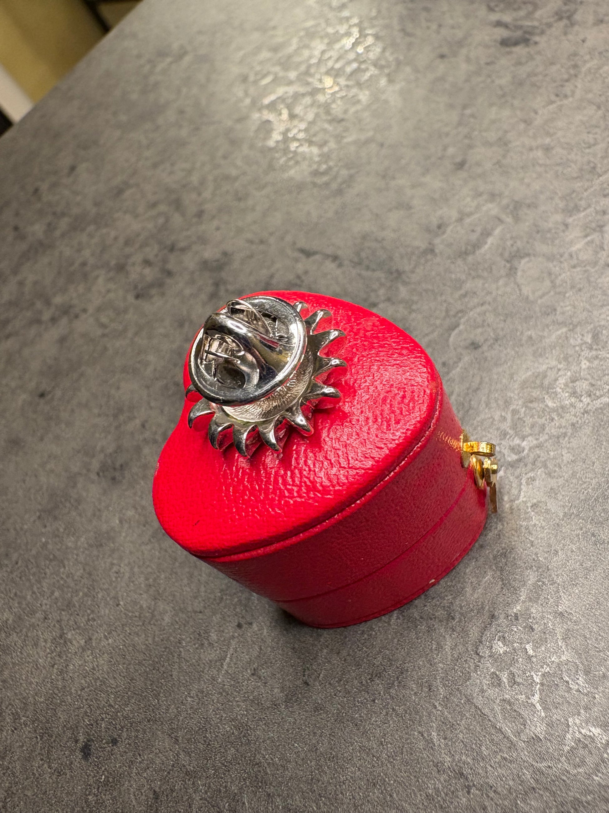 Il retro è lucido e dotato di chiusura a farfalla (clutch), pratica e sicura, che consente di indossarlo facilmente su giacche, camicie, cappotti o accessori.