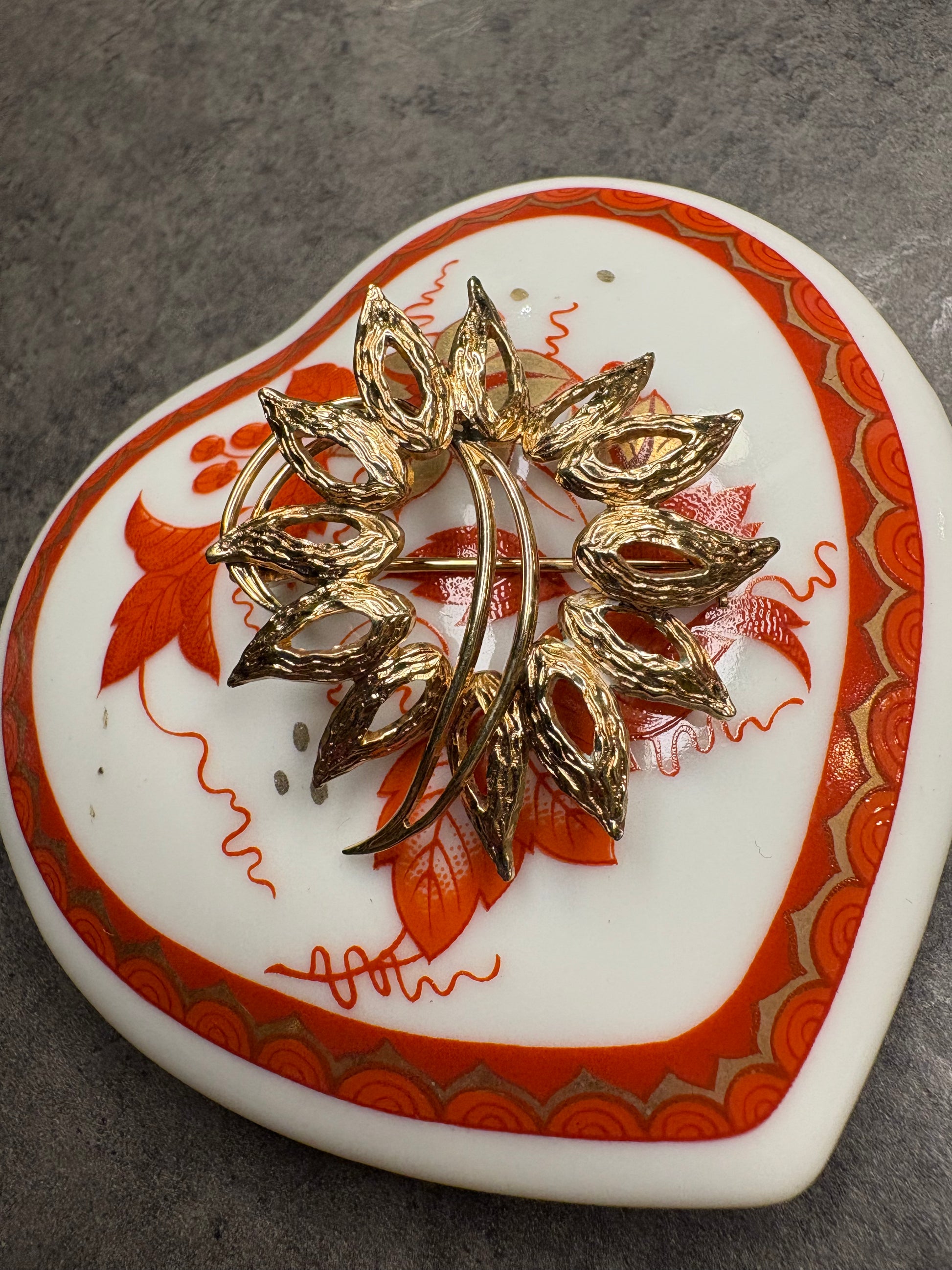 Il metallo placcato oro, brillante ma non eccessivo, regala alla spilla un fascino senza tempo, mentre il retro riporta la punzonatura “A♦D”, tipica firma di Andreas Daub. Nonostante l’età, il pezzo si conserva molto bene: sono presenti minimi segni del tempo, appena percepibili, che non ne compromettono l’estetica e anzi ne sottolineano l’autenticità vintage.