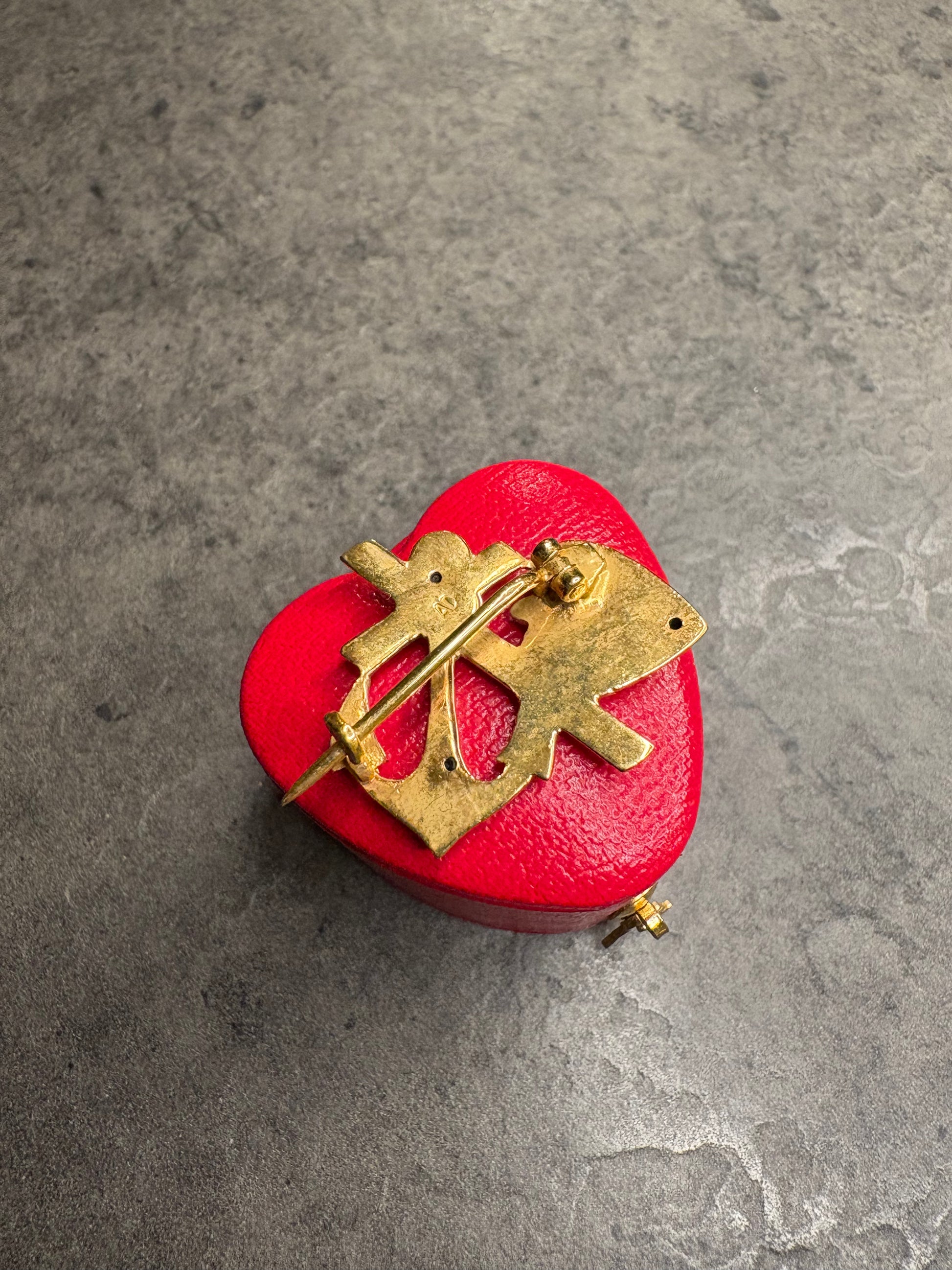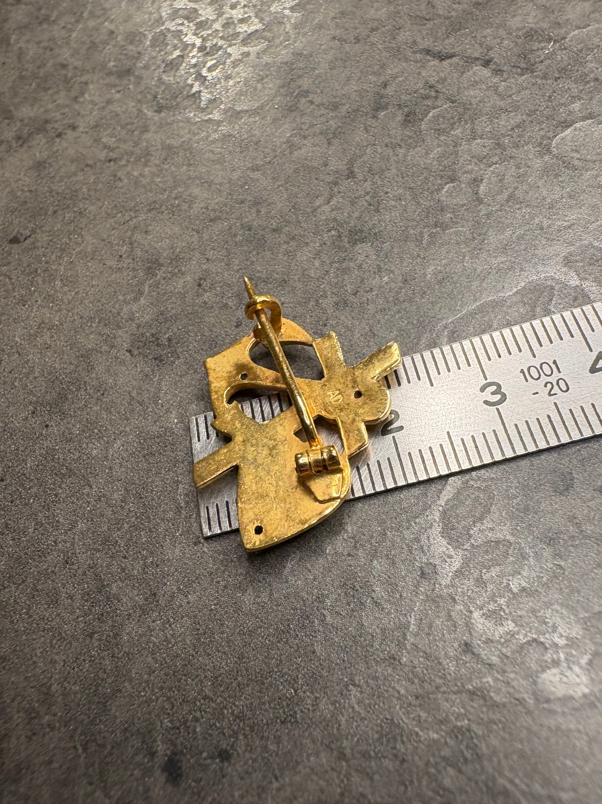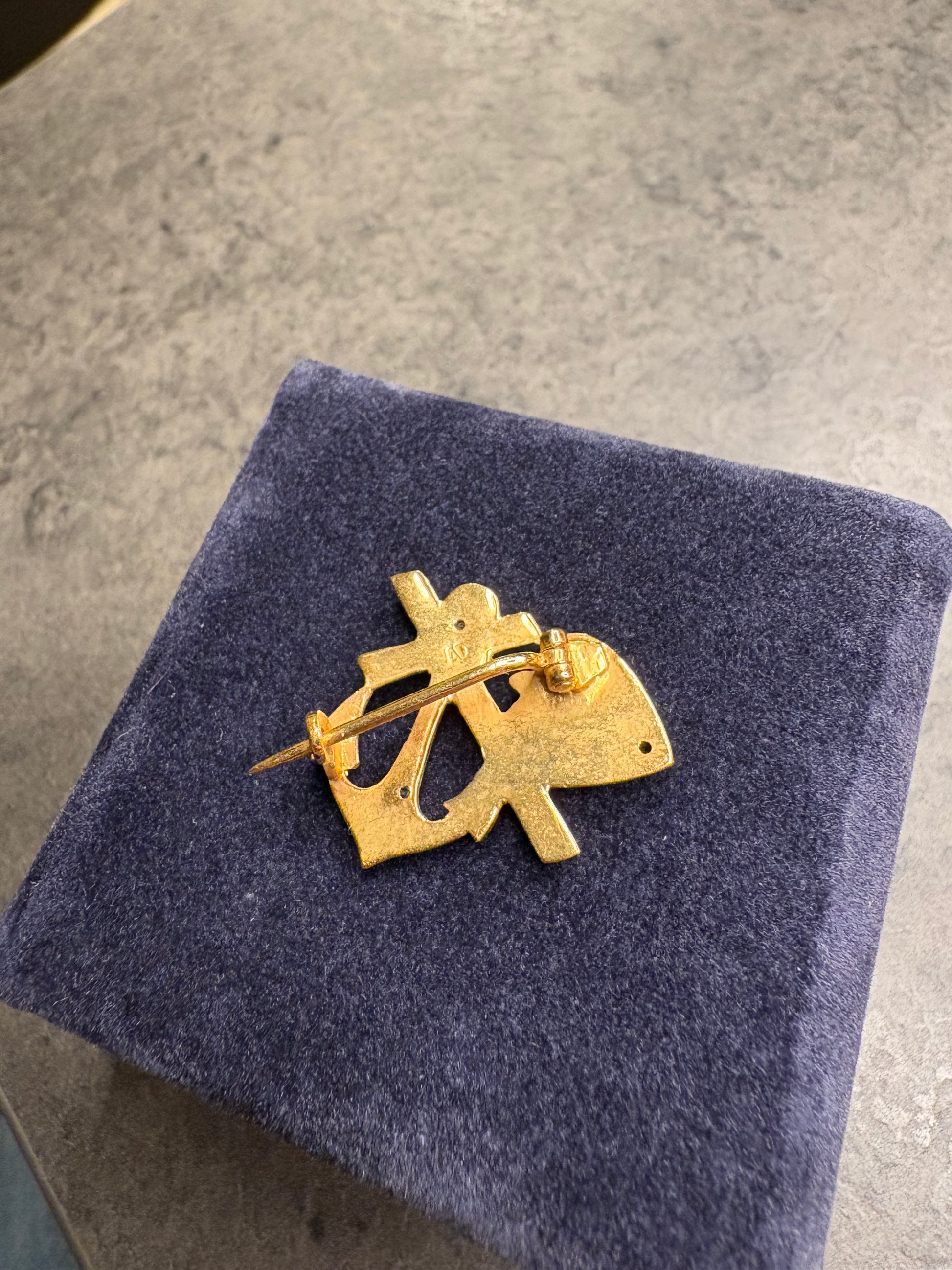 La chiusura a “C” originale è robusta e ben funzionante, tipica dei gioielli prodotti tra fine ’800 e prima metà del ’900, periodo in cui queste spille simboliche erano spesso donate come pegno d’affetto, protezione o promessa.