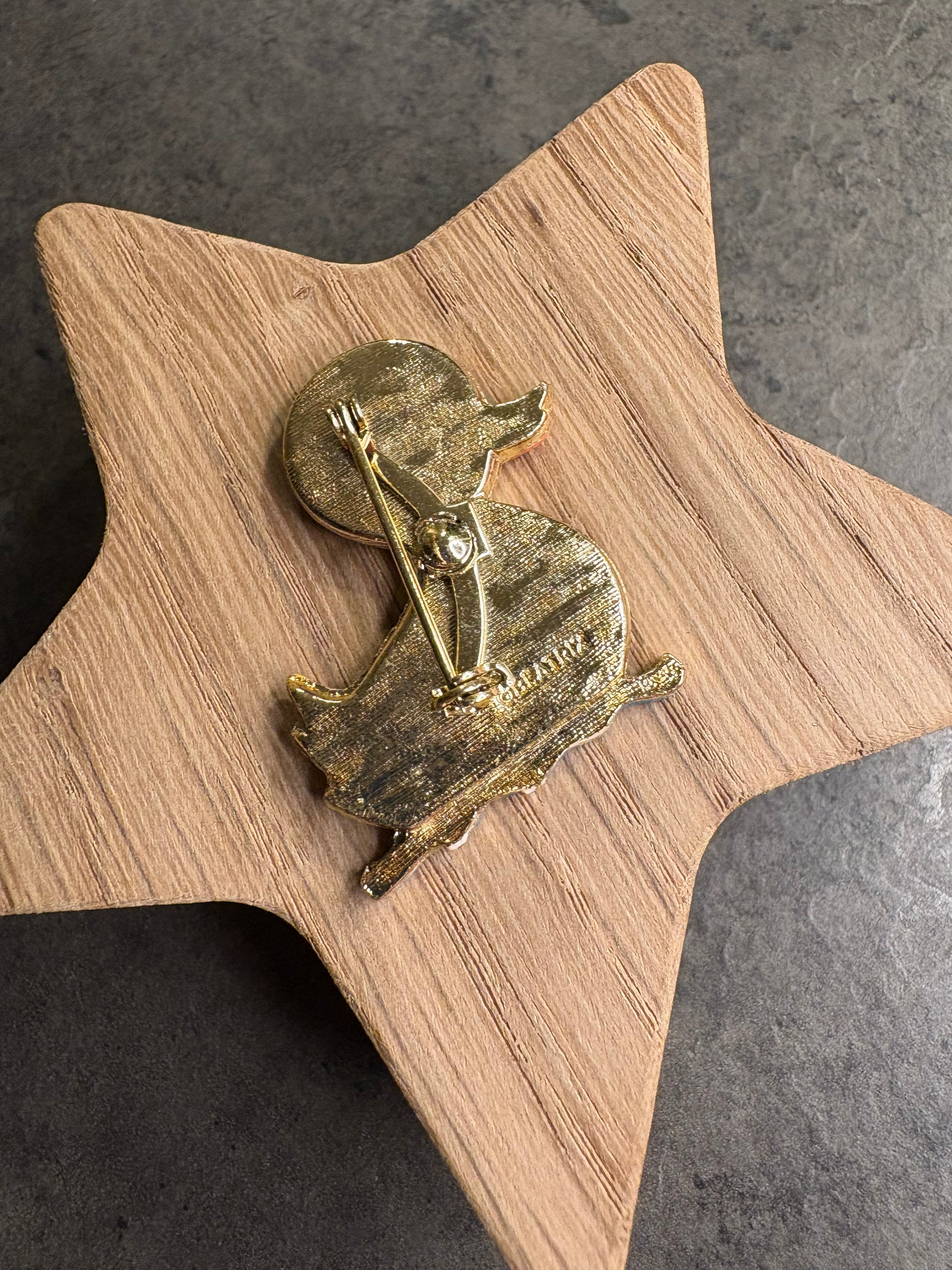 La forma è semplice e giocosa, tipica dello stile Beatrix: enamel cloisonné o simile, con colori allegri e un tocco naif, perfetta come brooch da giacca, sciarpa o cappotto.
