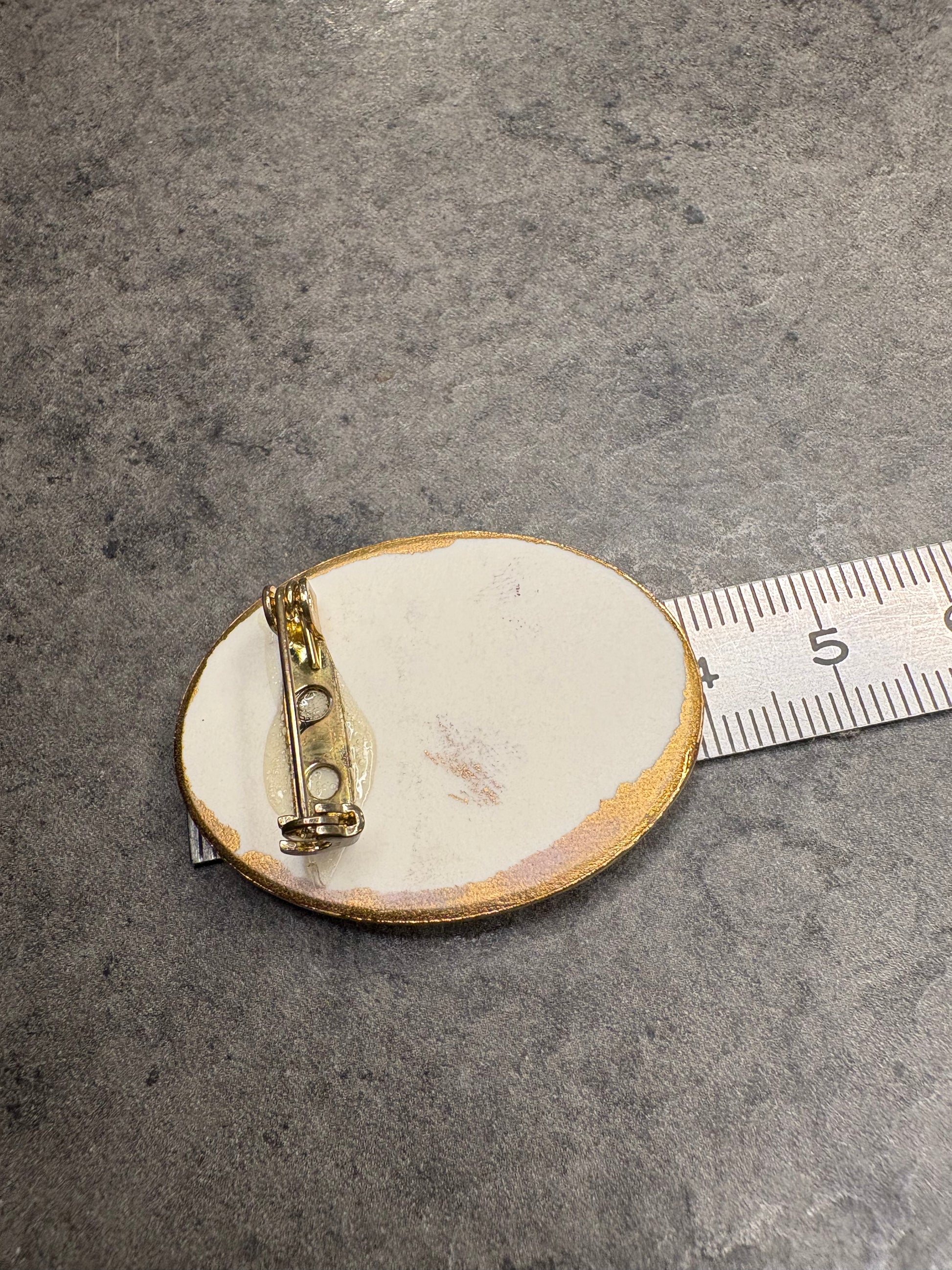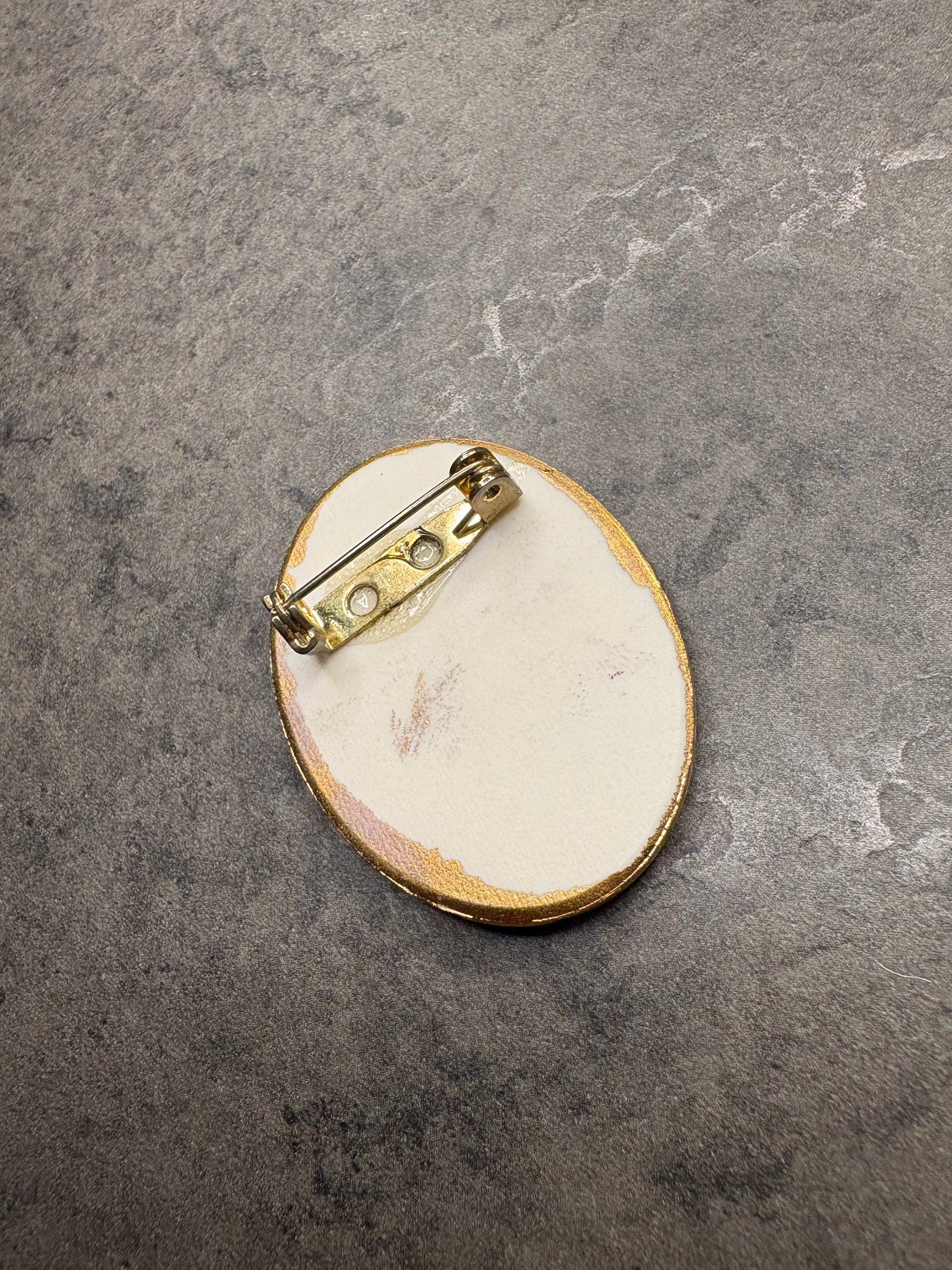 Questa splendida spilla vintage in ceramica è un raffinato esempio di artigianato artistico dal fascino senza tempo.