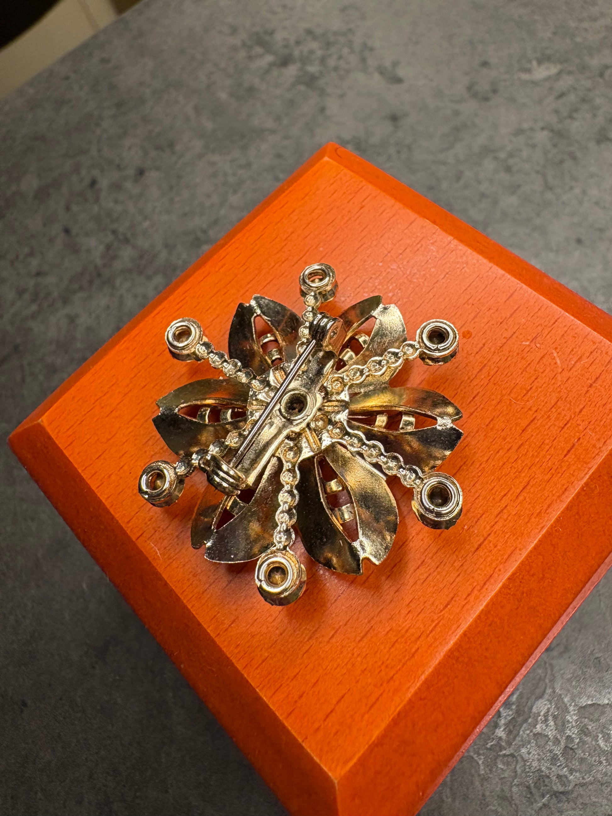 La spilla si presenta in ottime condizioni vintage, con minimi segni di età che non ne compromettono la brillantezza né il fascino intramontabile.