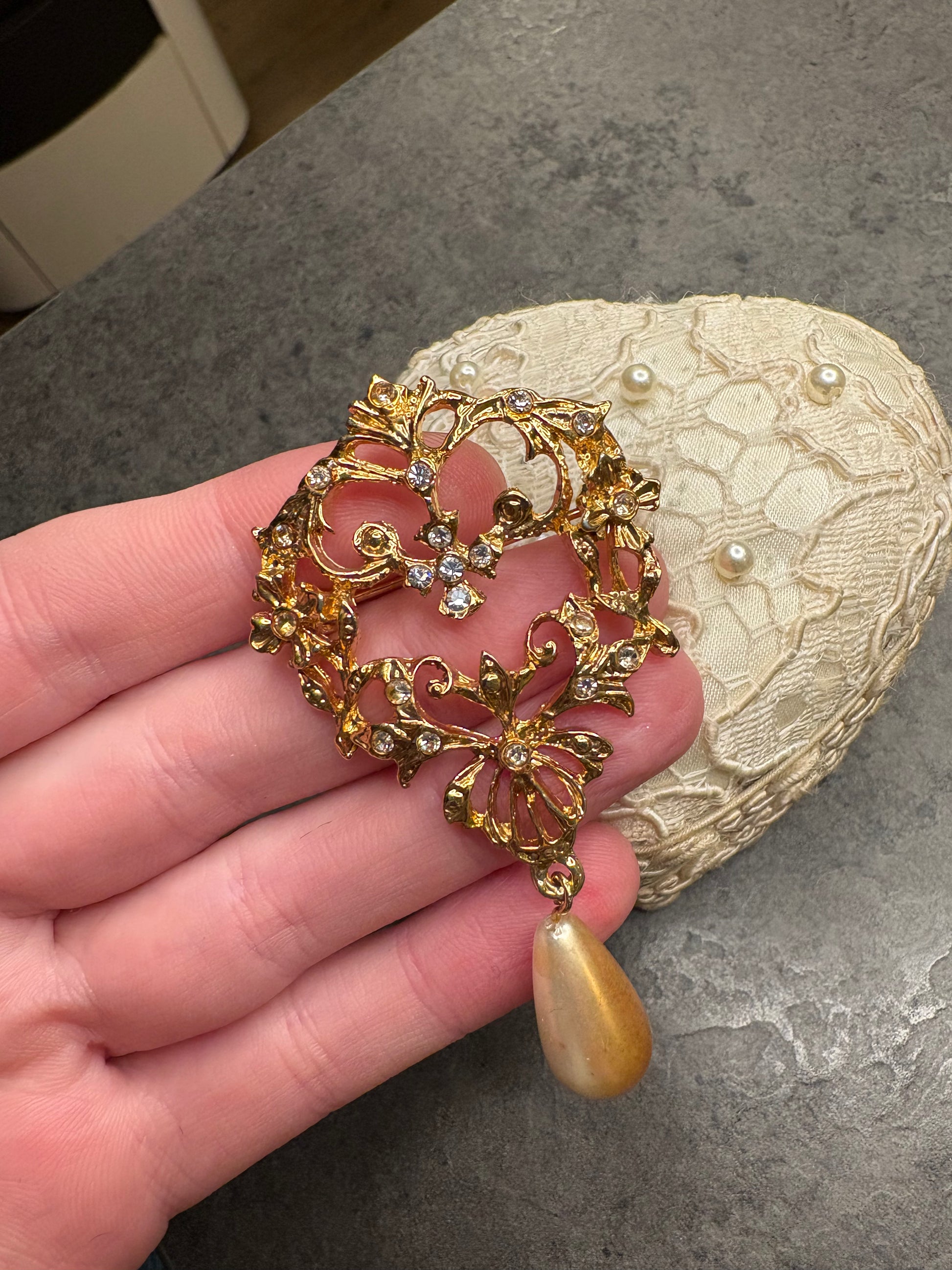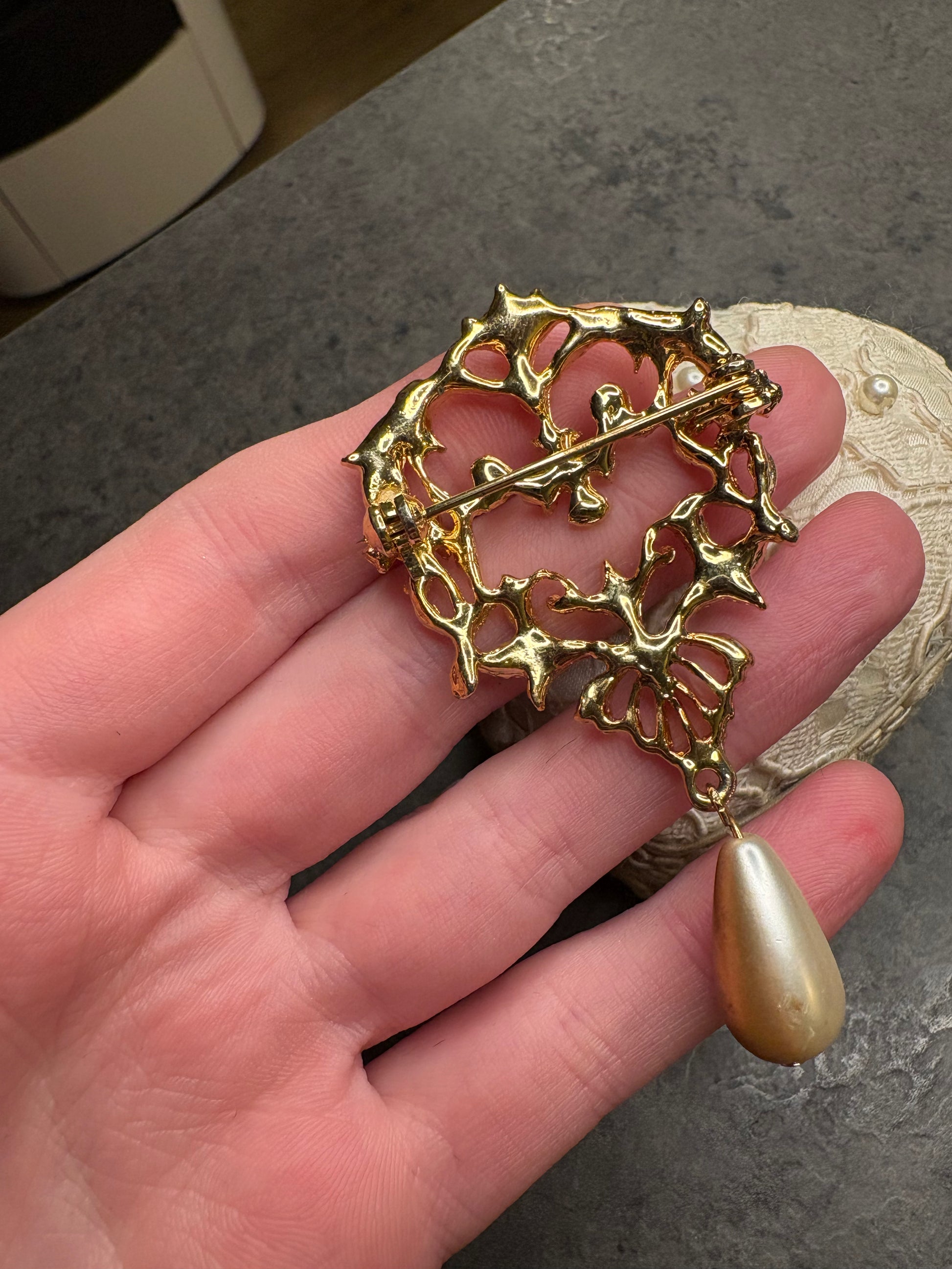 Una spilla dal fascino romantico e ricercato, perfetta per completare con classe un outfit retrò o un abito da sera.