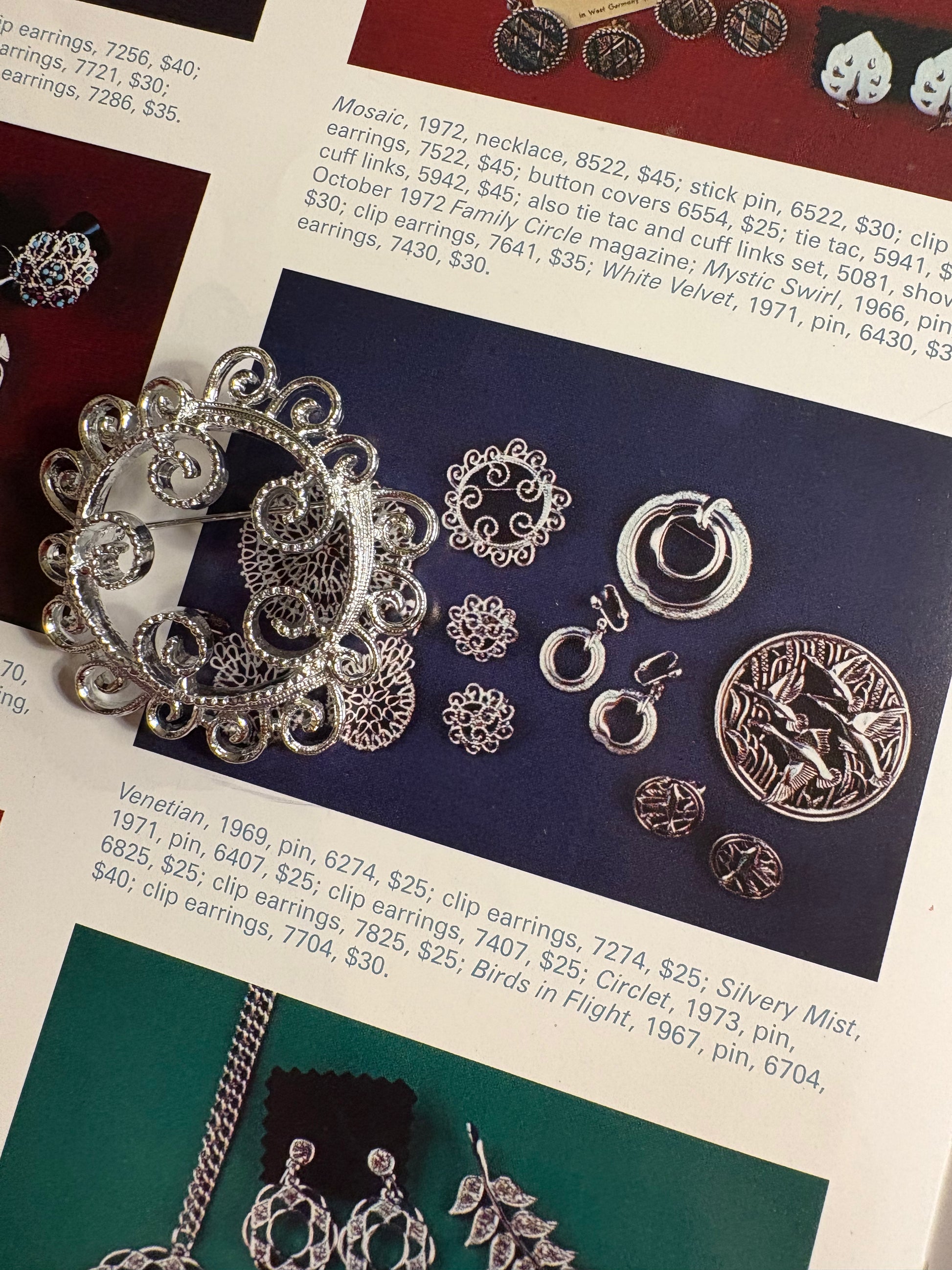 Un gioiello raffinato e intramontabile firmato Sarah Coventry, parte della celebre collezione Silvery Mist del 1971.
