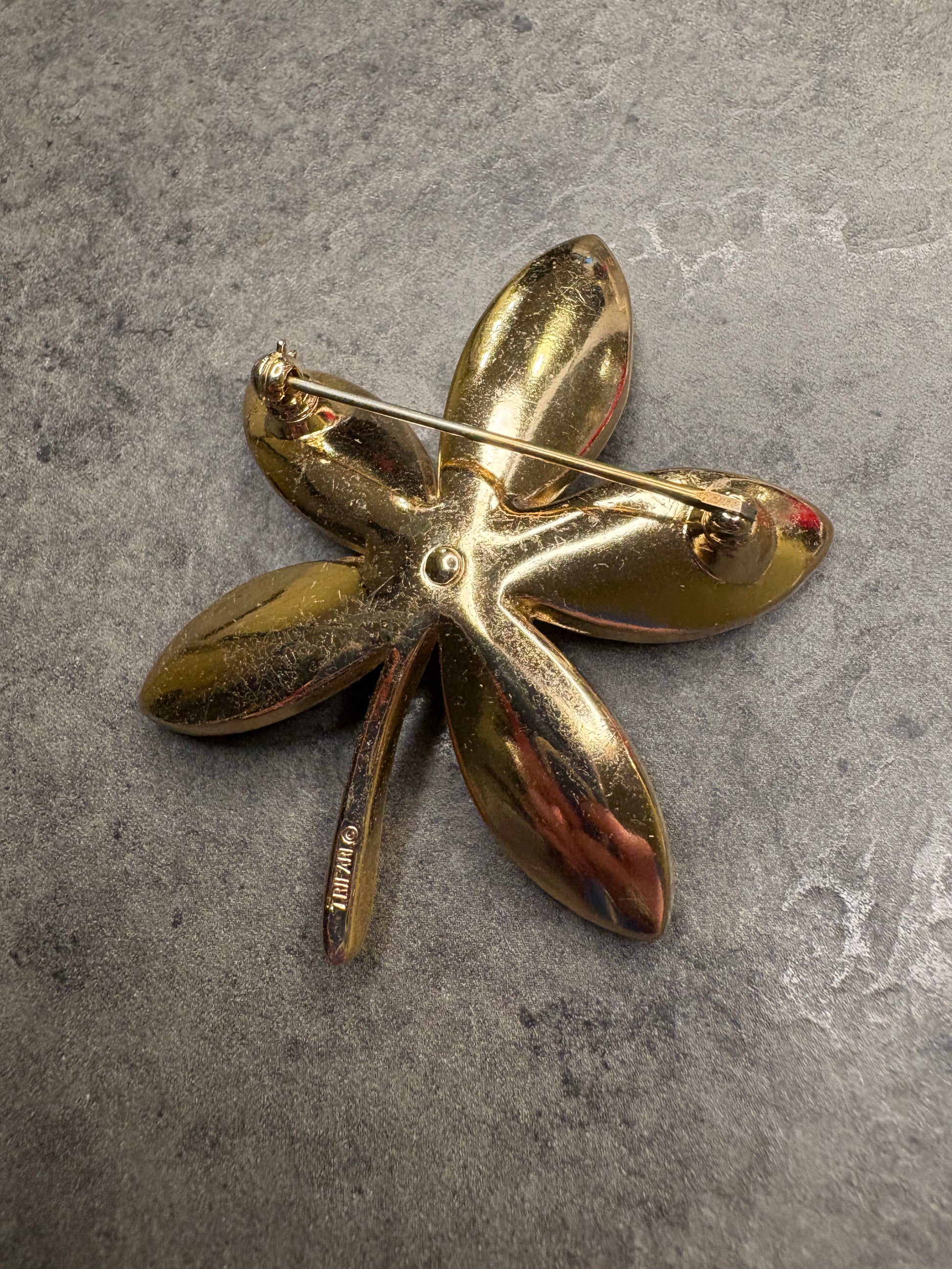 Questa splendida spilla vintage Trifari degli anni ’60 è un raffinato esempio del design elegante e scultoreo tipico della maison in quel periodo.