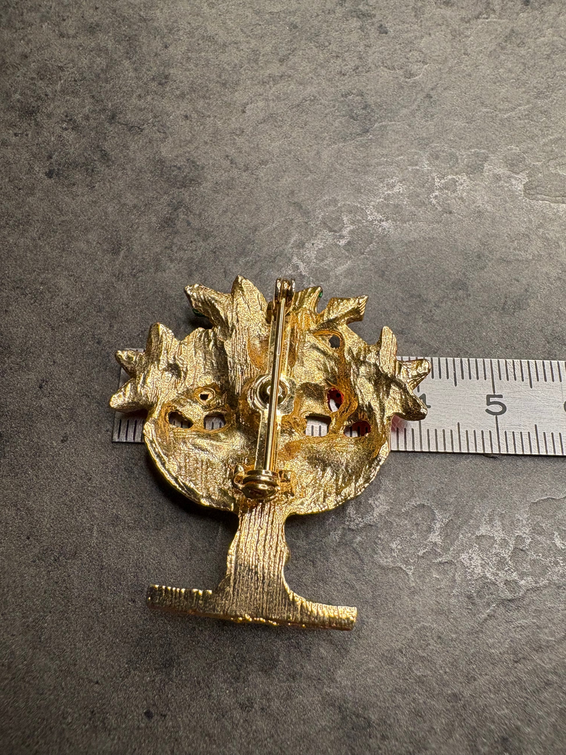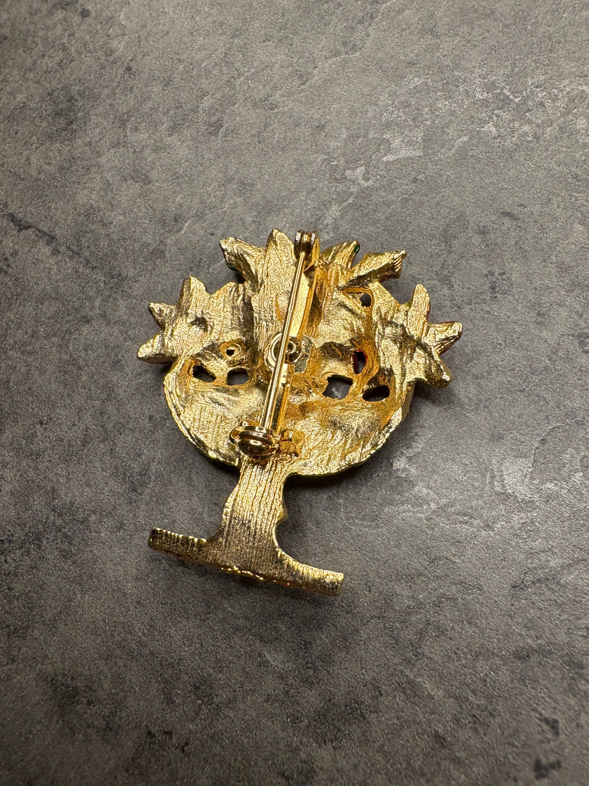 Realizzata in metallo color oro con dettagli smaltati a mano nei toni vivaci del rosso e del verde, emana un fascino gioioso e retrò.